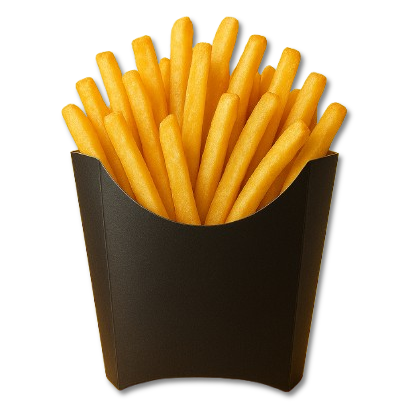 Batatas fritas sequinhas e crocantes, servidas na medida certa para uma porção individual irresistível. O acompanhamento clássico que nunca decepciona.